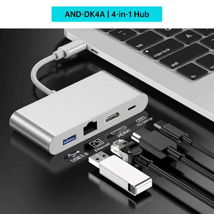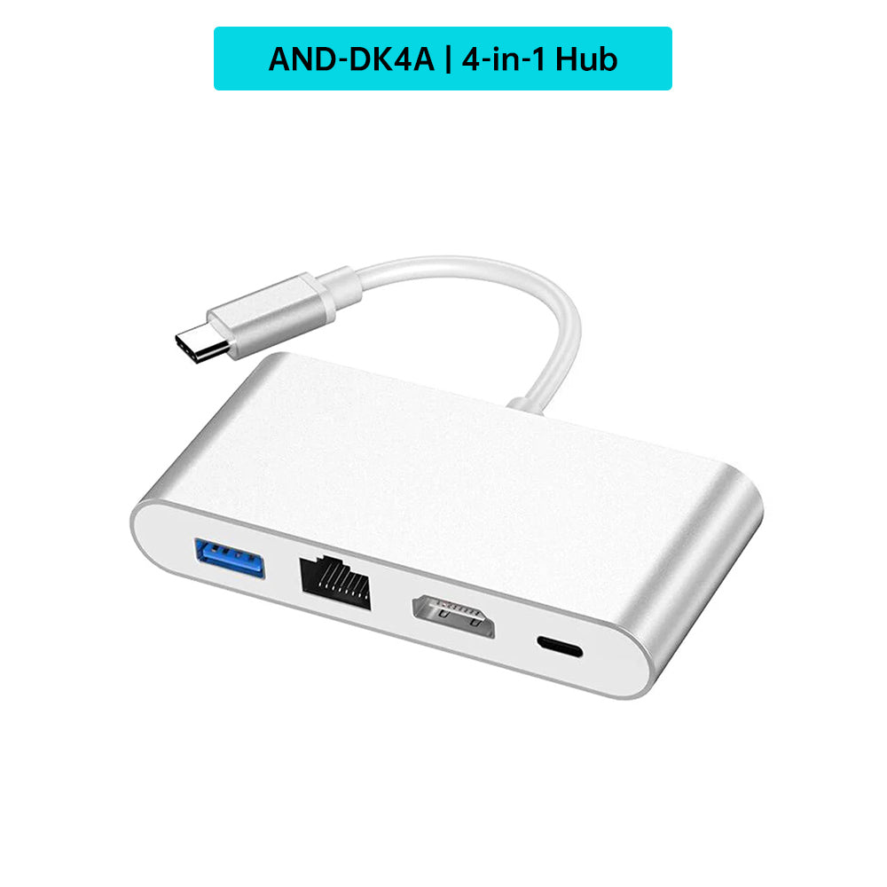 AND-DK4A | 4-in-1 Hub | USB (3.0) + Ethernet (RJ45) + HDMI (4K) + TYPE-C (PD)