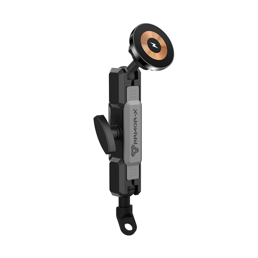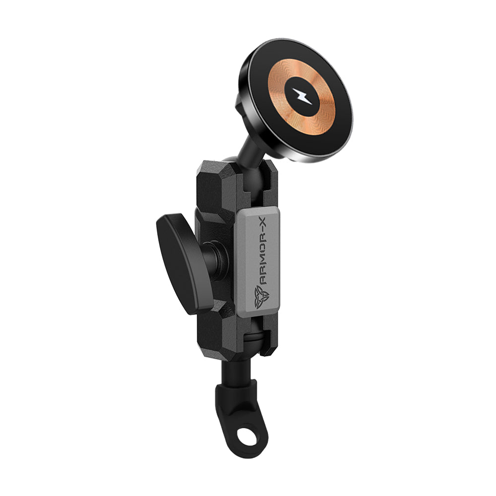 ARMOR-X Heavy-Duty Motorcycle Mirror Titled Bolt Head MagSafe 15W Fast Charger Mount for iPhone.