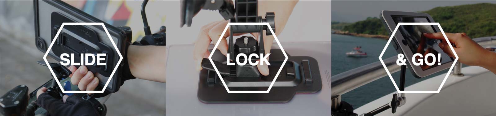 The patented X-Mount System allows your tablet to be mounted interchangeably on any heavy construction equipment or survey laser scanner. Just simply: Slide, Lock and Go! It is the best rugged and durable mounting solutions for constructions site. With our single lock system, you can adjust your iPad to the ideal position. Your project schedule, drawings, task, instruction and more data are now accessible in the cab of heavy equipment.