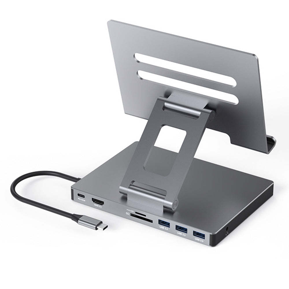 AND-DK8A | 8-in-1 Hub with Foldable Stand | TYPE-C (PD) + HDMI (4K) + TF + SD + 3 USB (3.0)+ Audio (3.5mm)