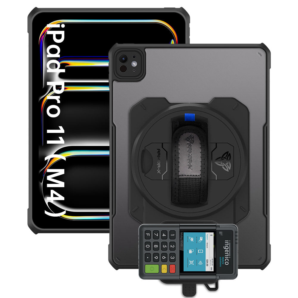 EX2-DAN-iPad-PR11 | iPad Pro 11 (M4) / (M5) | Ultra Slim 4 Corner Anti-Impact Tablet Case With Ingenico Moby 6500 Card Reader Holder Supports Apple Pencil Pro Wireless Charging