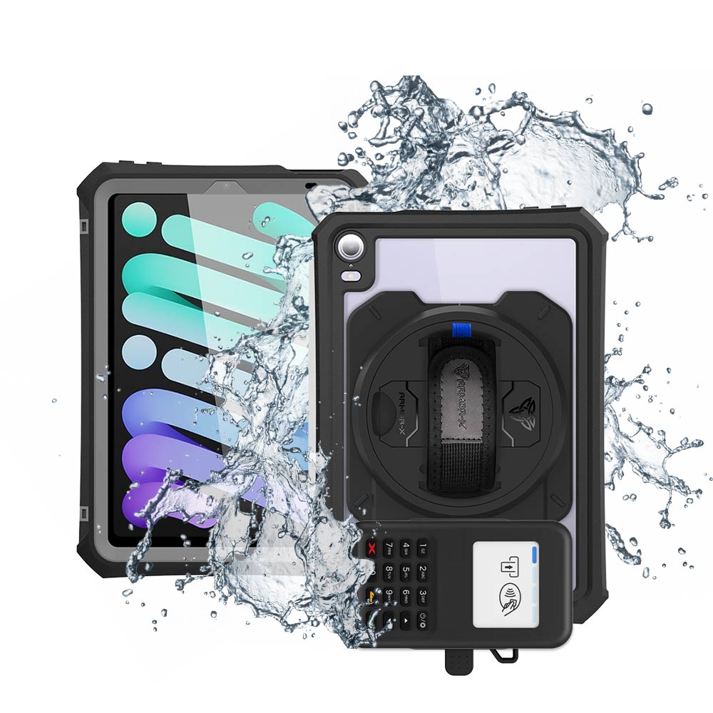 EX2-MAN-iPad-M6PN | iPad mini 6 | IP68 Waterproof, Shock & Dust Proof Case With Grafterr Go BBPOS WisePad 3 Card Reader Holder Supports Apple Pencil 2 Wireless Charging
