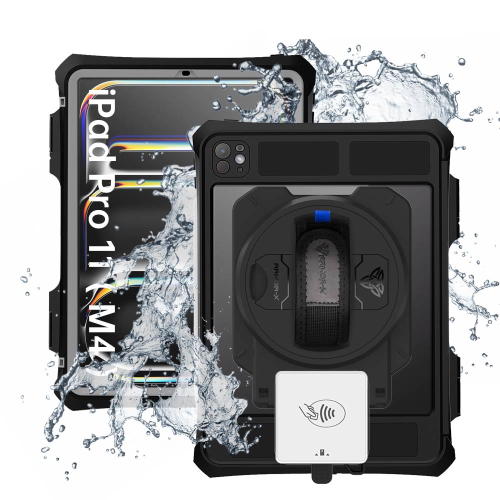 EX2-MAN-iPad-PR11PN | iPad Pro 11 (M4) | IP68 Waterproof, Shock & Dust Proof Case With Payanywhere 3-in-1 Credit Card Reader Holder Supports Apple Pencil Pro Wireless Charging