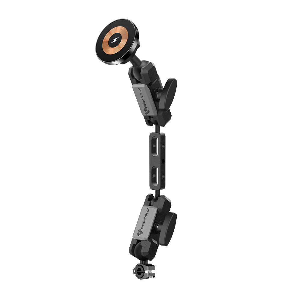 ARMOR-X Heavy-Duty Motorcycle Mirror MagSafe 15W Fast Charger Mount for iPhone.