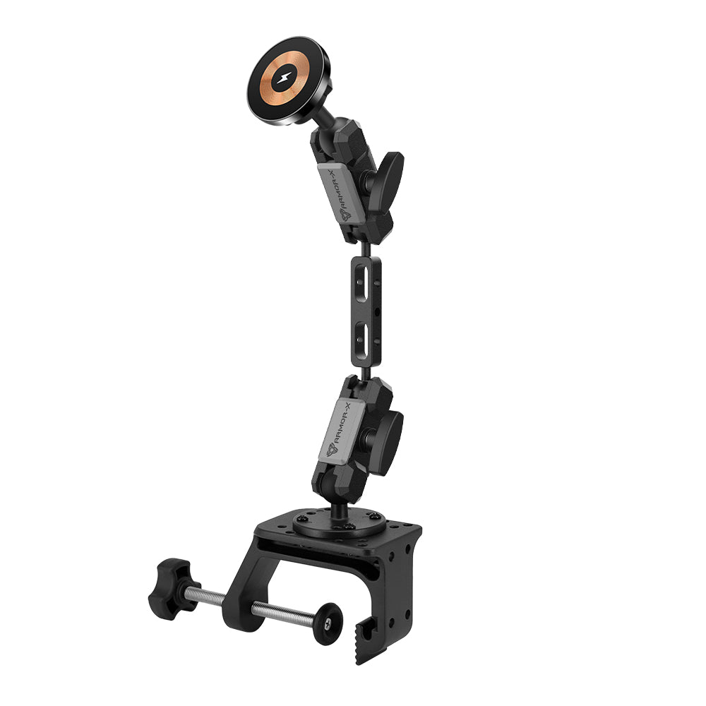 ARMOR-X Heavy-Duty G-Clamp MagSafe 15W Fast Charger Mount for iPhone.