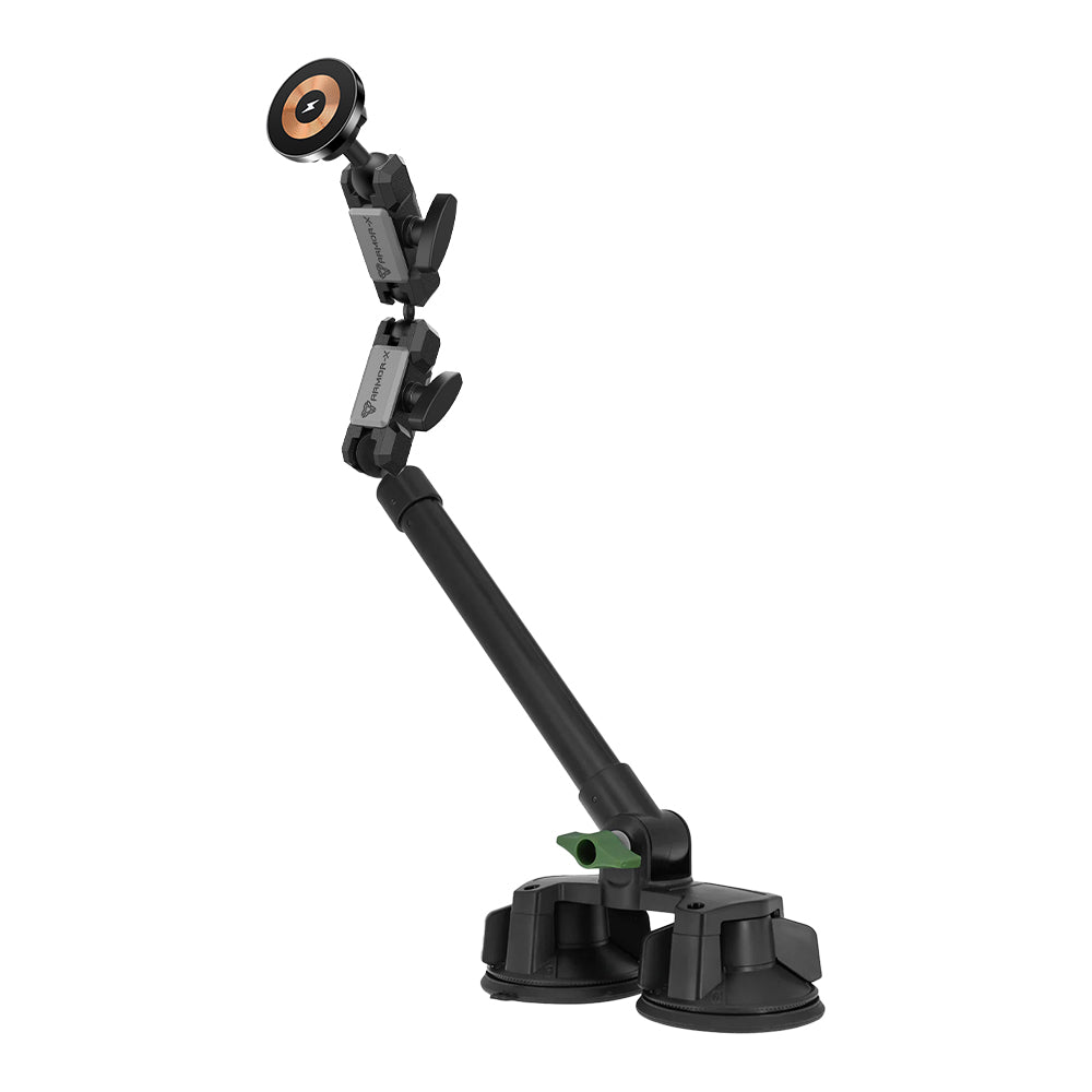ARMOR-X ONE-LOCK Dual Suction Cup MagSafe 15W Fast Charger Mount with Long Arm for iPhone.