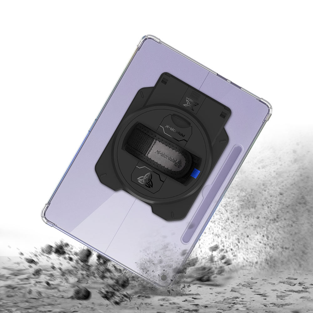 Our protective case comes with a built-in hand strap, kick-stand and X-DOCK interface. It provides the best functionality for our end user to use their tablet securely.