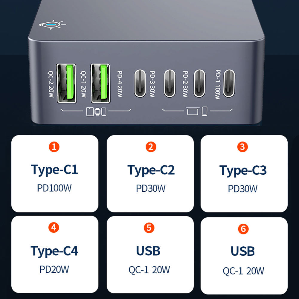 CHR-X6 | 6-Port USB-C PD Intelligent Multi Charger 140W Output