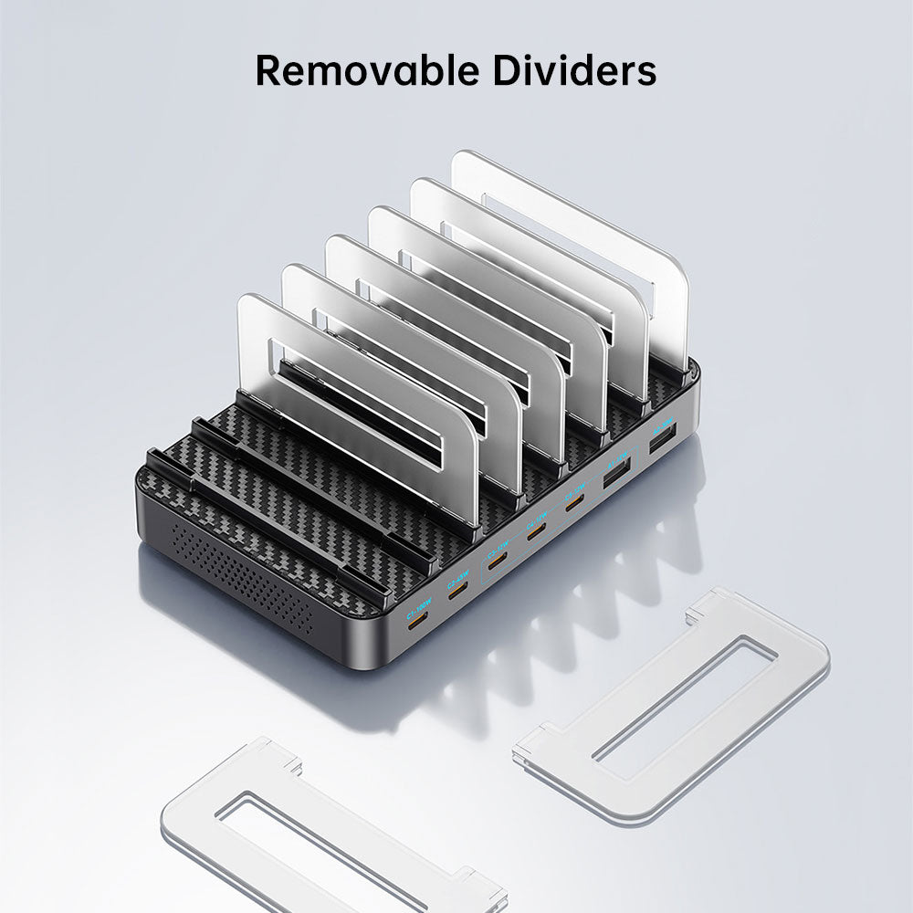 Equipped with 8 removable, high-hardness dividers, this charging dock adapts effortlessly to devices of different sizes—even those in thick protective cases. The dividers keep devices securely in place while preventing scratches and collisions.
