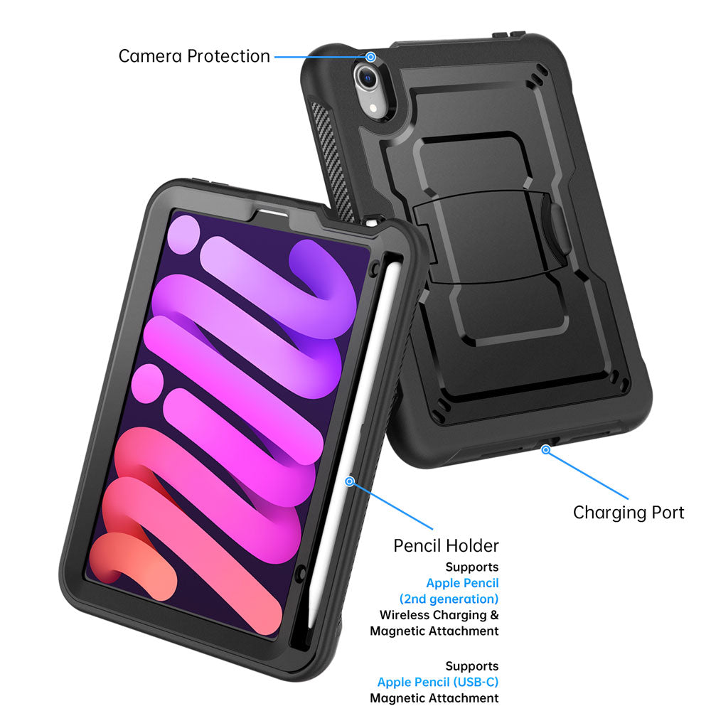 CLN-iPad-M6 | iPad mini 6 | Dual layers shockproof rugged case with kick-stand & Pen Holder
