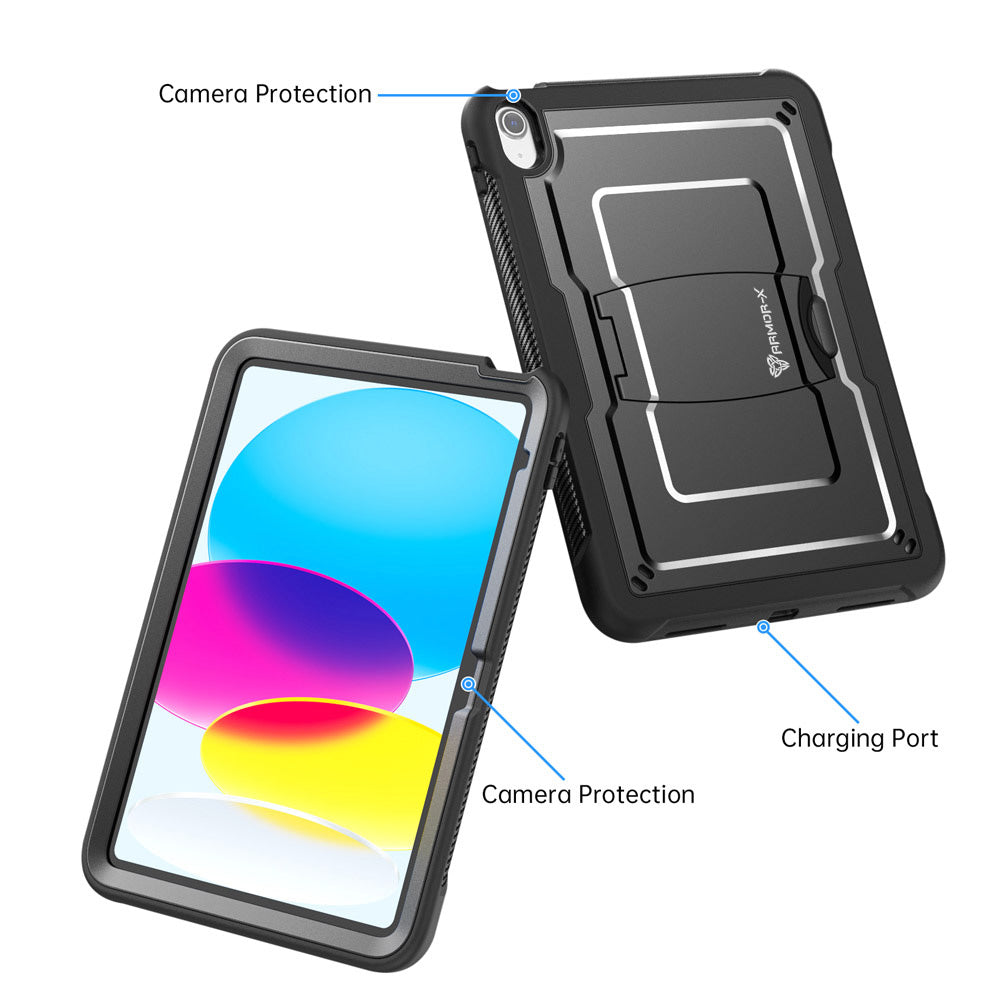 CLN-iPad-N5 | iPad 10.9 (10th Gen.) | Dual layers shockproof rugged case with kick-stand