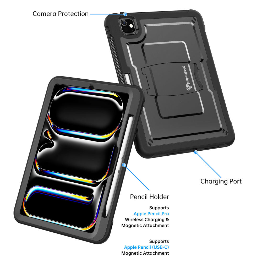 CLN-iPad-PR11 | iPad Pro 11 ( M4 ) | Dual layers shockproof rugged case with kick-stand & Pen Holder