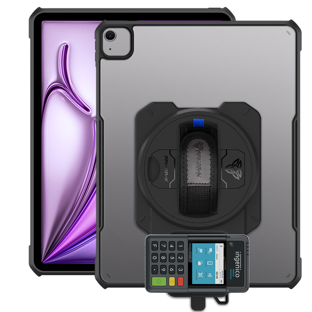 EX2-DAN-iPad-A6 | iPad Air 13 (M2) / (M3) | Ultra Slim 4 Corner Anti-Impact Tablet Case With Ingenico Moby 6500 Card Reader Holder Supports Apple Pencil Pro Wireless Charging
