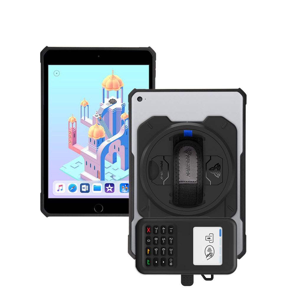 EX2-DAN-ipad-M5 | iPad mini 5 / mini 4 | Ultra Slim 4 Corner Anti-Impact Tablet Case With Grafterr Go BBPOS WisePad 3 Card Reader Holder