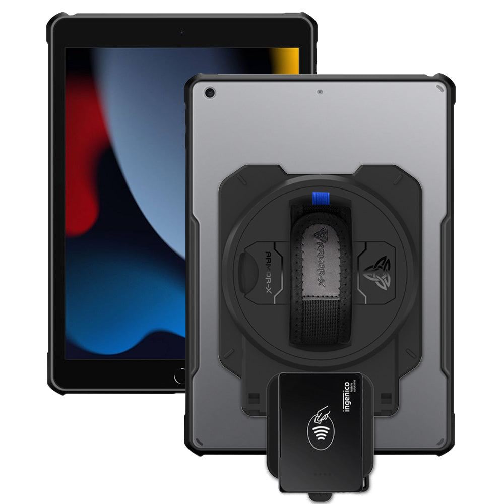 EX2-DAN-iPad-N3 | iPad 10.2 (7th & 8th & 9th Gen.) 2019 / 2020 / 2021 | Ultra Slim 4 Corner Anti-Impact Tablet Case With Ingenico Moby 5500 Card Reader Holder