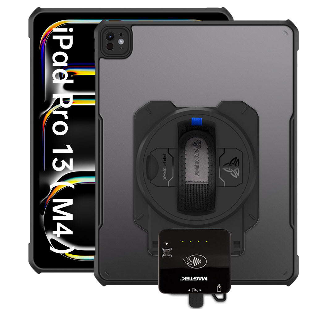 EX2-DAN-iPad-PR11 | iPad Pro 11 (M4) / (M5) | Ultra Slim 4 Corner Anti-Impact Tablet Case With Magtek DynaFlex II Go Card Reader Holder Supports Apple Pencil Pro Wireless Charging