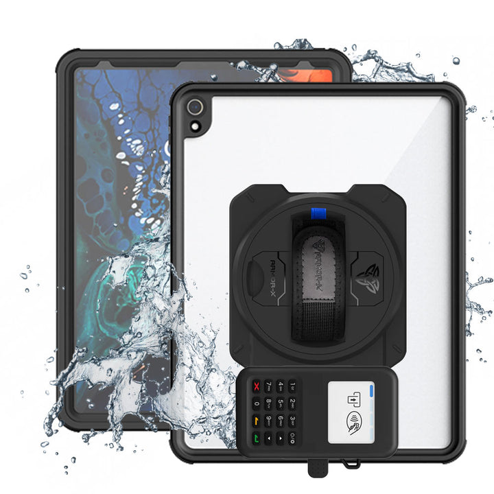 EX2-MAN-A11S | iPad Pro 12.9 ( 3rd Gen. ) 2018 | IP68 Waterproof, Shock & Dust Proof Case With Grafterr Go BBPOS WisePad 3 Card Reader Holder