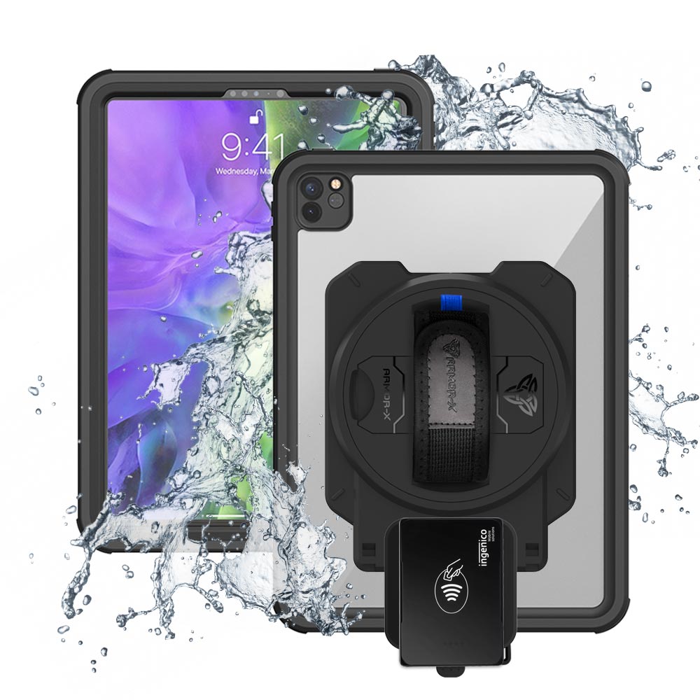 EX2-MAN-A12S | iPad Pro 11 ( 2nd Gen ) 2020 | IP68 Waterproof, Shock & Dust Proof Case With Ingenico Moby 5500 Card Reader Holder