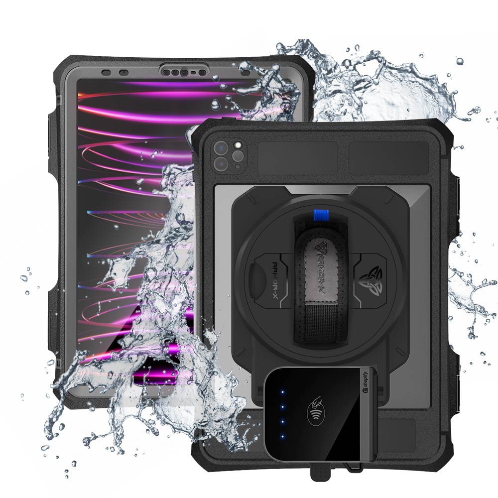 EX2-MAN-A15SPN | iPad Pro 11 ( 2nd / 3rd / 4th Gen. ) 2020 / 2021 / 2022 | IP68 Waterproof, Shock & Dust Proof Case With Shopify Tap & Chip Card Reader Holder & Pencil Holder Supports Apple Pencil 2 Wireless Charging