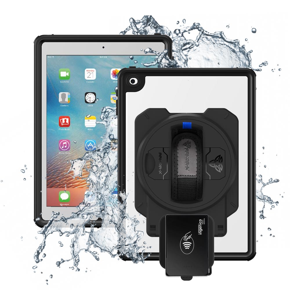 EX2-MAN-A7S | iPad 9.7 ( 5th / 6th Gen. ) 2017 / 2018 | IP68 Waterproof, Shock & Dust Proof Case With Ingenico Moby 5500 Card Reader Holder