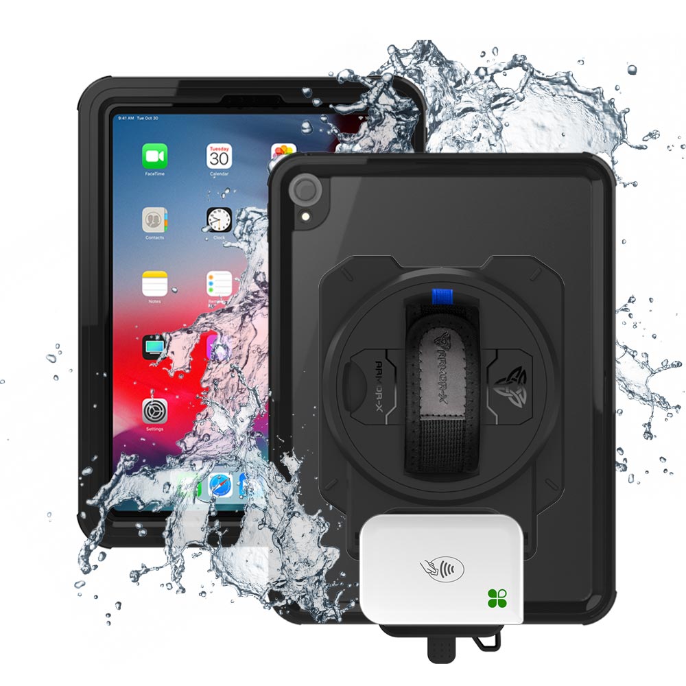 EX2-MAN-A9S | iPad Pro 11 ( 1st Gen. ) 2018 | IP68 Waterproof, Shock & Dust Proof Case With Clover Go Card Reader Holder