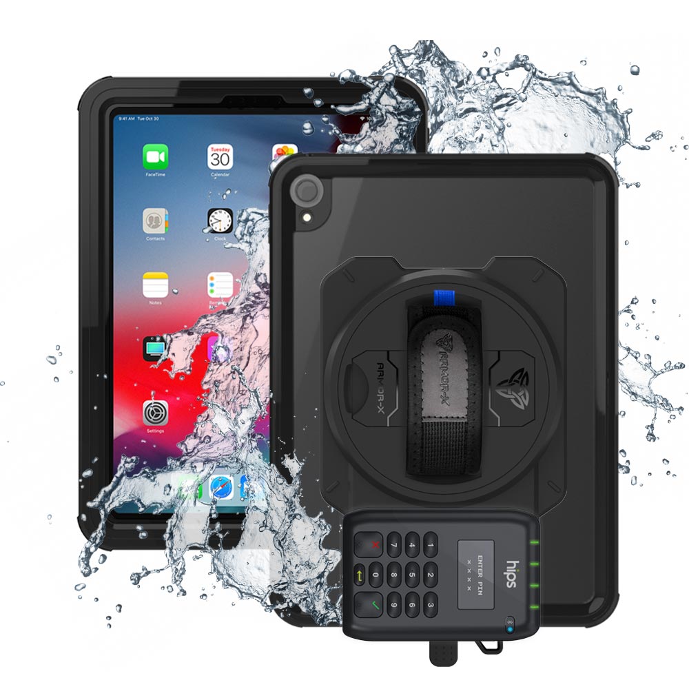 EX2-MAN-A9S | iPad Pro 11 ( 1st Gen. ) 2018 | IP68 Waterproof, Shock & Dust Proof Case With Miura's M010 Card Reader Holder