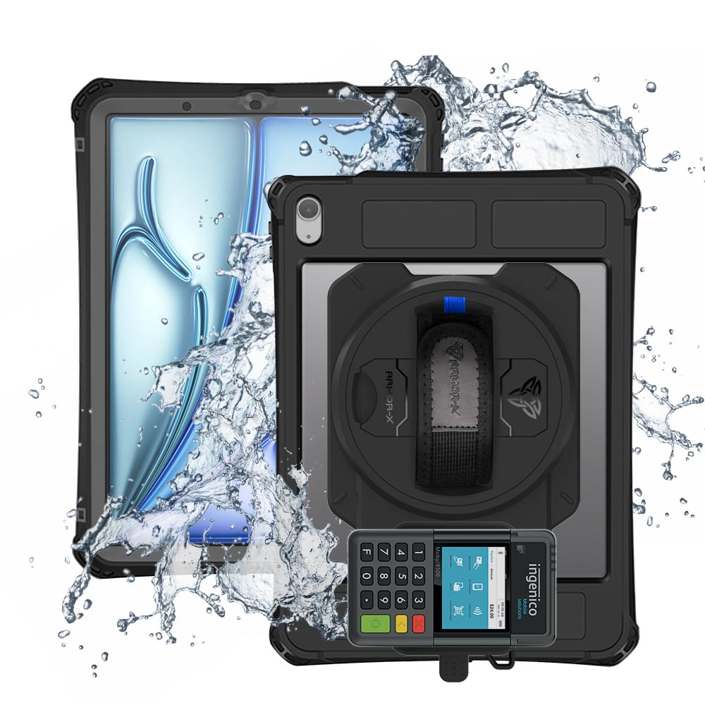 EX2-MAN-iPad-A5PN | iPad Air 11 (M2) / (M3) | IP68 Waterproof, Shock & Dust Proof Case With Ingenico Moby 6500 Card Reader Holder Supports Apple Pencil Pro Wireless Charging