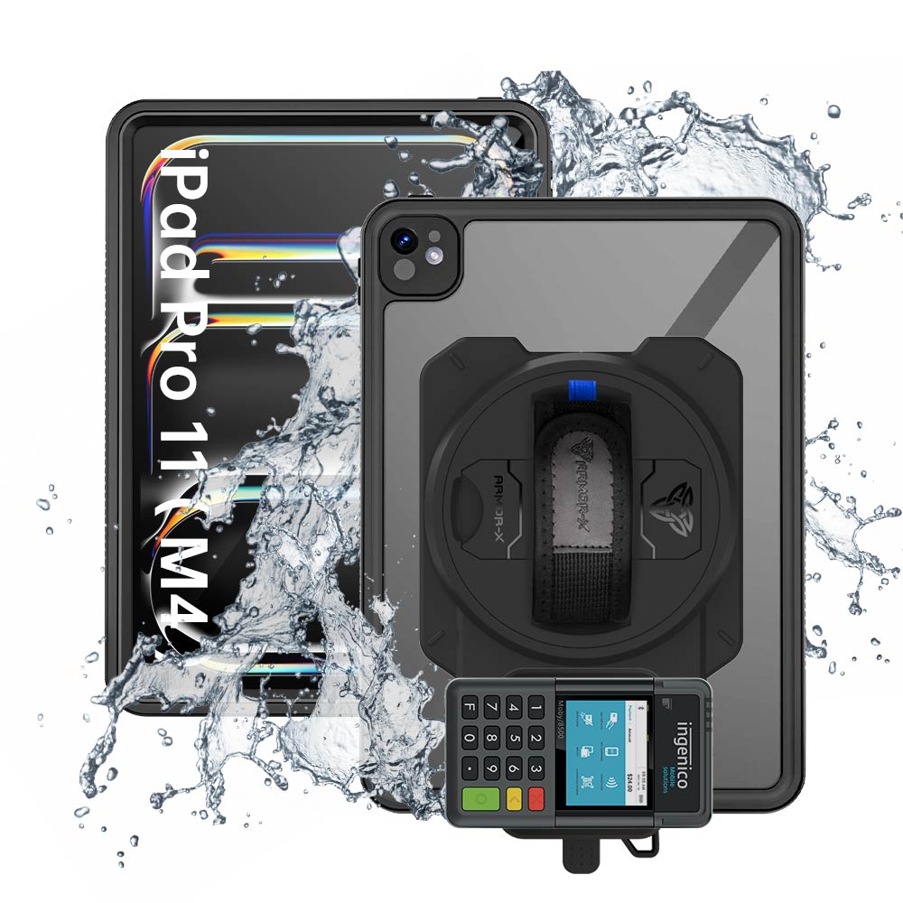 EX2-MAN-iPad-PR11 | iPad Pro 11 (M4) / (M5) | IP68 Waterproof, Shock & Dust Proof Case With Ingenico Moby 6500 Card Reader Holder