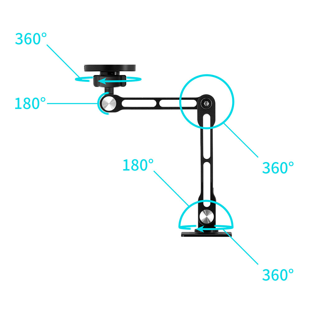 • Featuring 5 rotatable joints (3x360°, 2x180°), you just need to loosen the screws with Allen key, adjust the position and angle and height, and then tighten the screws.