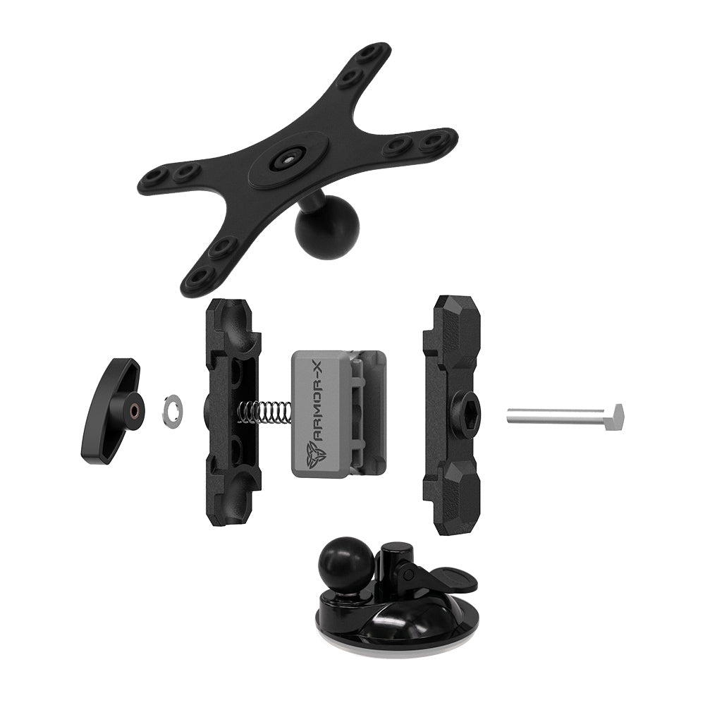 ARMOR-X Vacuum Suction Cup Universal Mount for tablet. Provides super strong hold on car windshield, window or other smooth, flat, and polished surfaces.