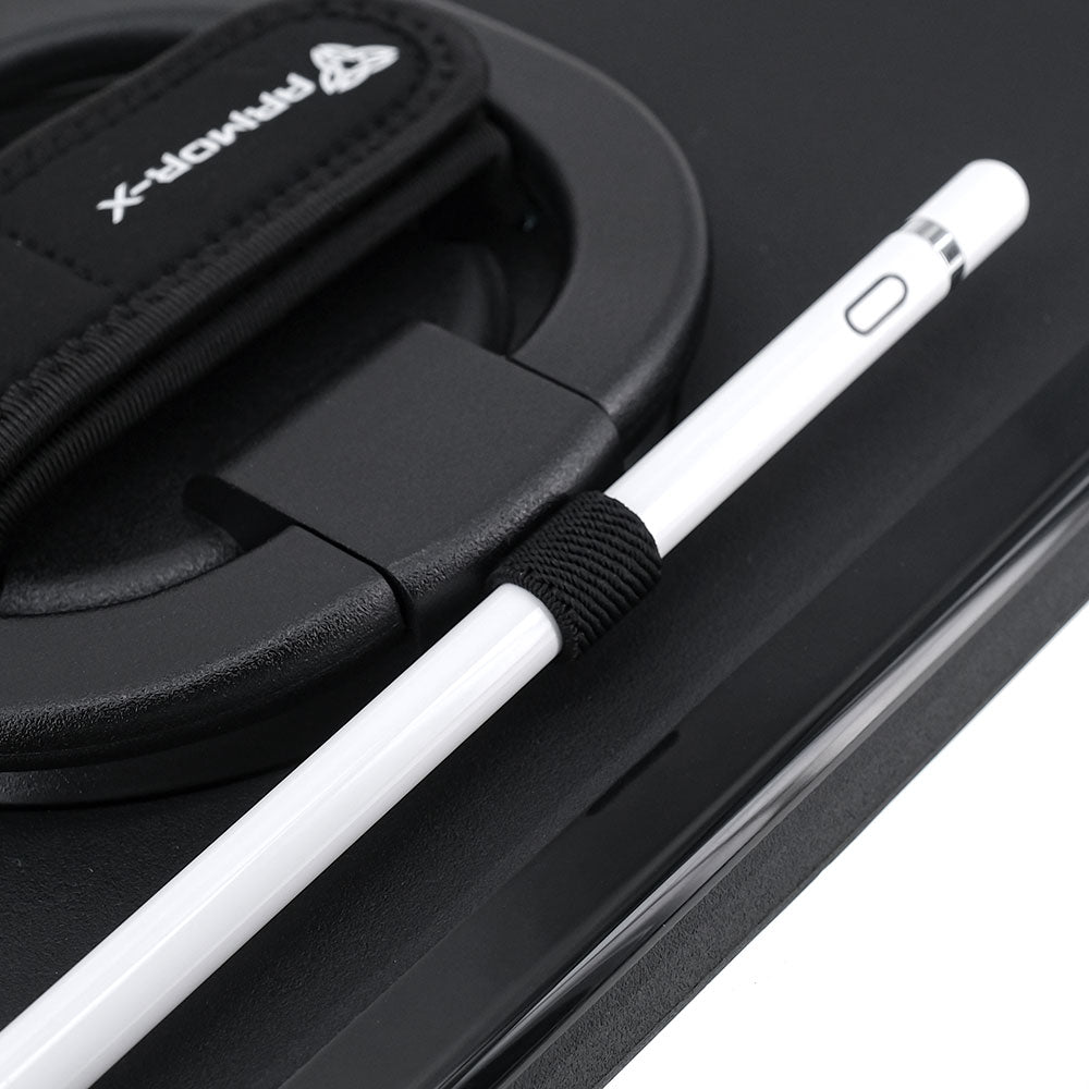 ARMOR-X Apple iPad shockproof case, impact protection cover with hand strap and kick stand & folding grip. One-handed design for your workplace.