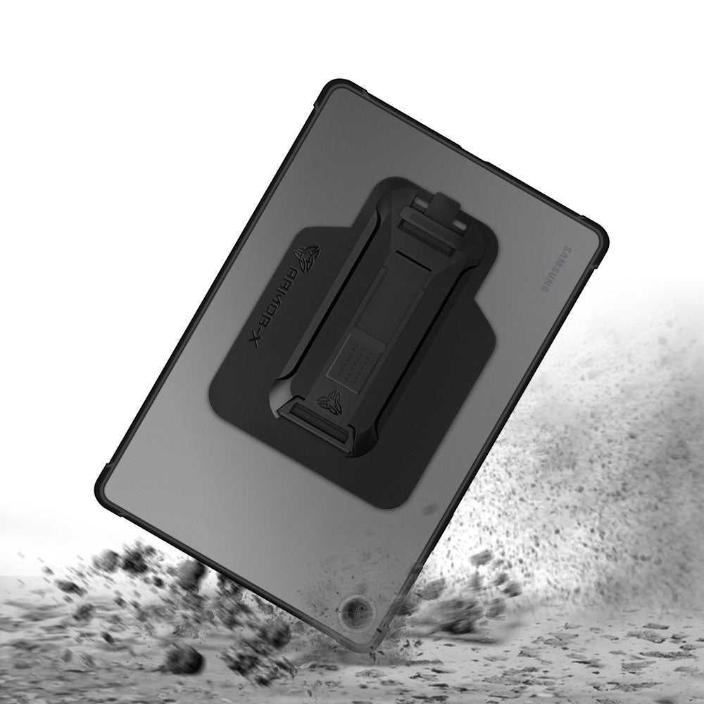 ARMOR-X Samsung Galaxy Tab A9+ A9 Plus ( 11" ) SM-X210 / SM-X215 / SM-X216 Matte Protective Case with hand strap and kick stand. One-handed design for your workplace.