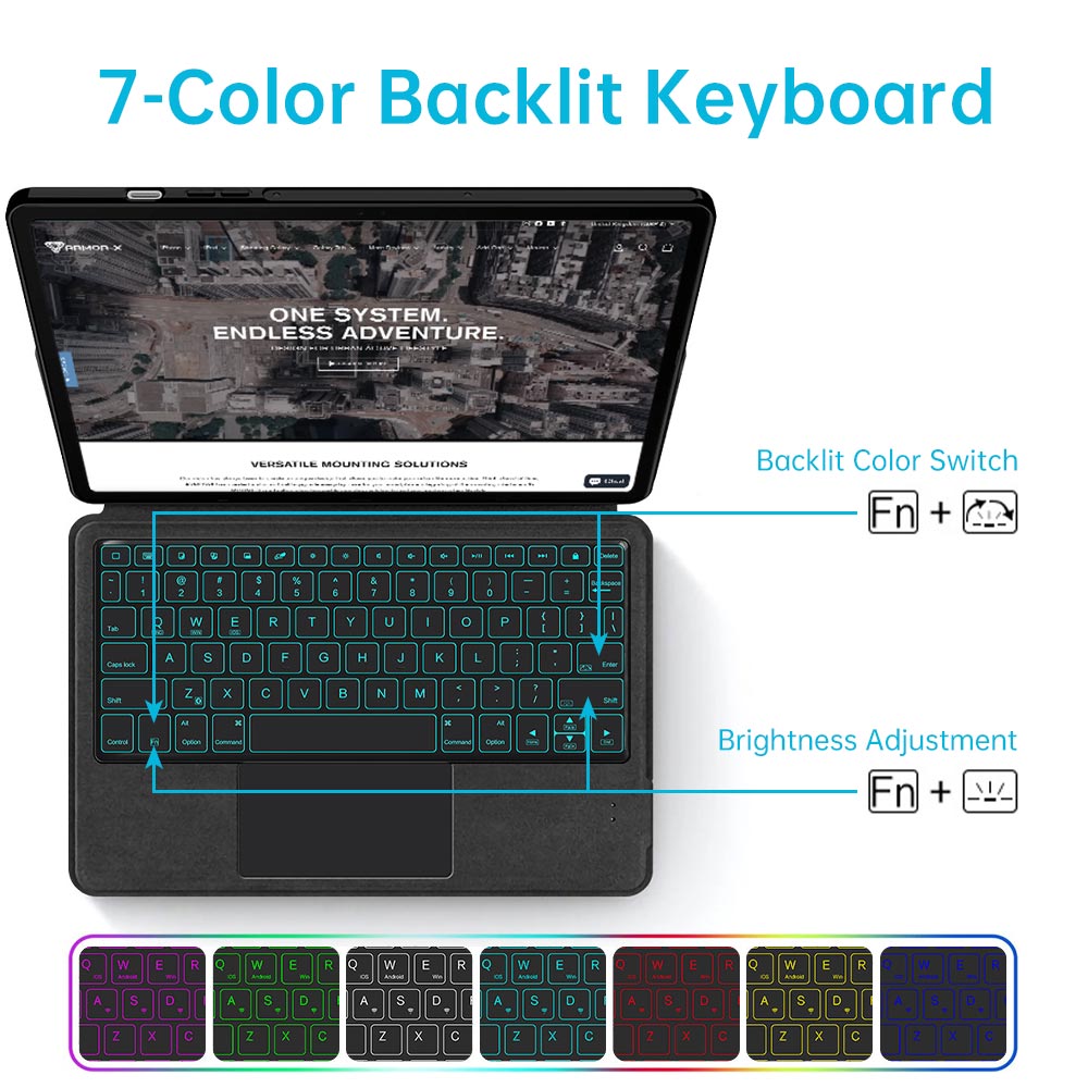 ARMOR-X wireless bluetooth keyboard case with trackpad. Work comfortably in any environment with vibrant 7-color backlighting.