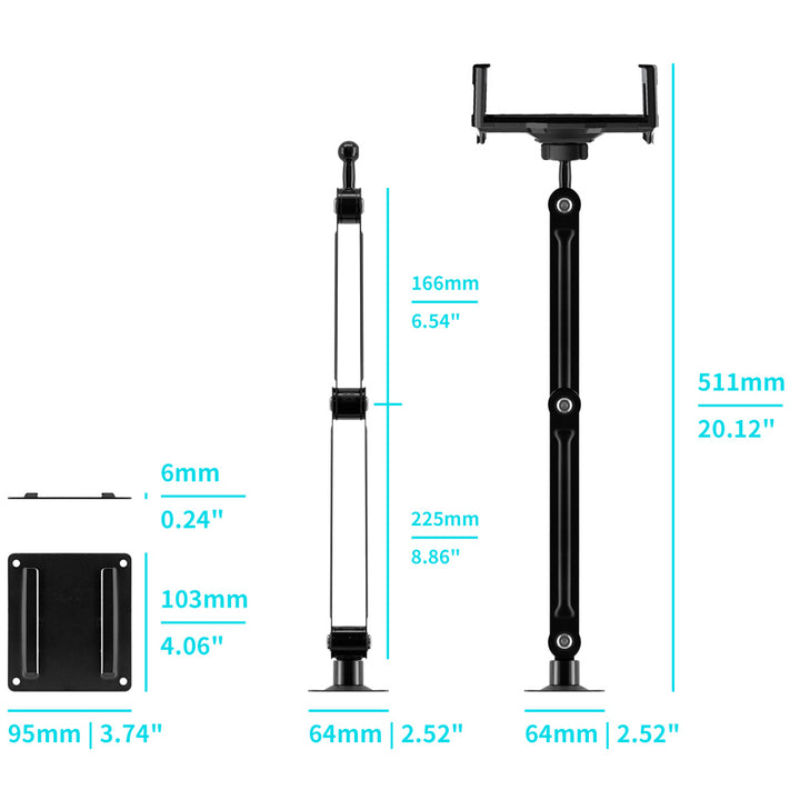 • Universal holder for 124mm - 253mm ( 4.88" - 9.96" ) width iPad or Tablet
