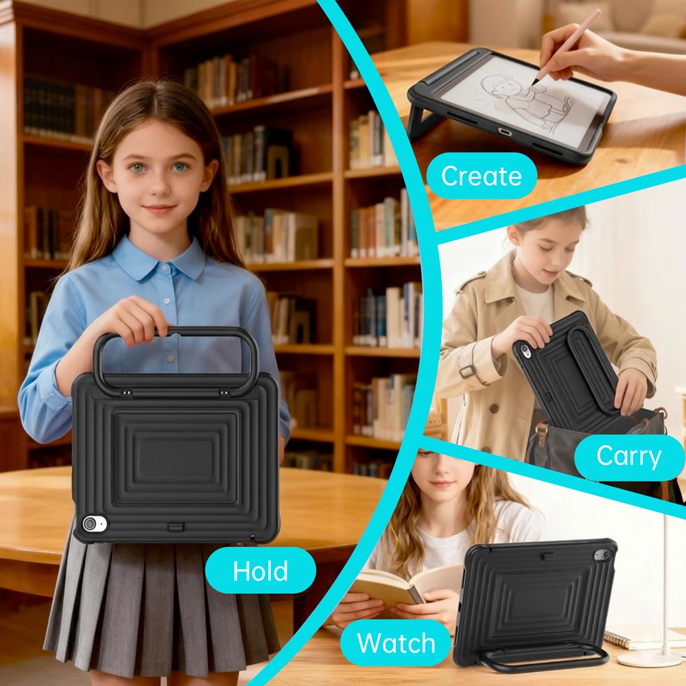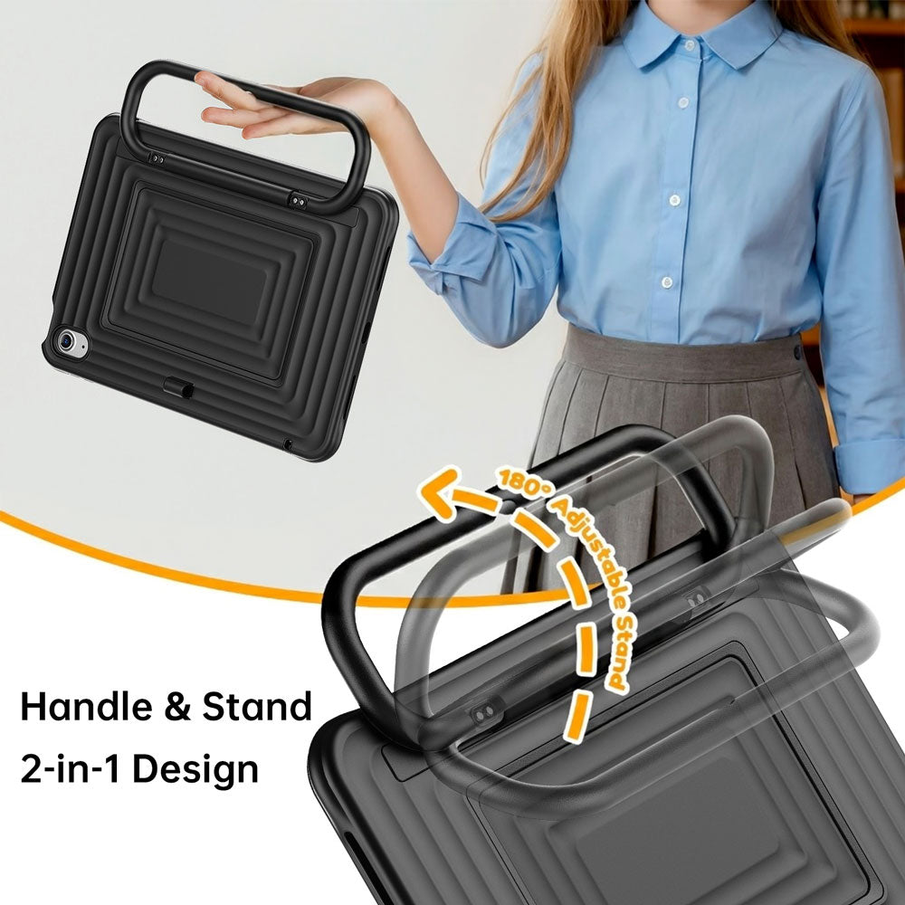 Designed for convenience and versatility, the integrated handle offers a secure grip—perfect for kids or on-the-go use. It also doubles as a sturdy kickstand, rotating up to 180° for flexible viewing angles. Whether you're watching videos, typing, or video calling, it easily adapts to your needs and folds flat when not in use.