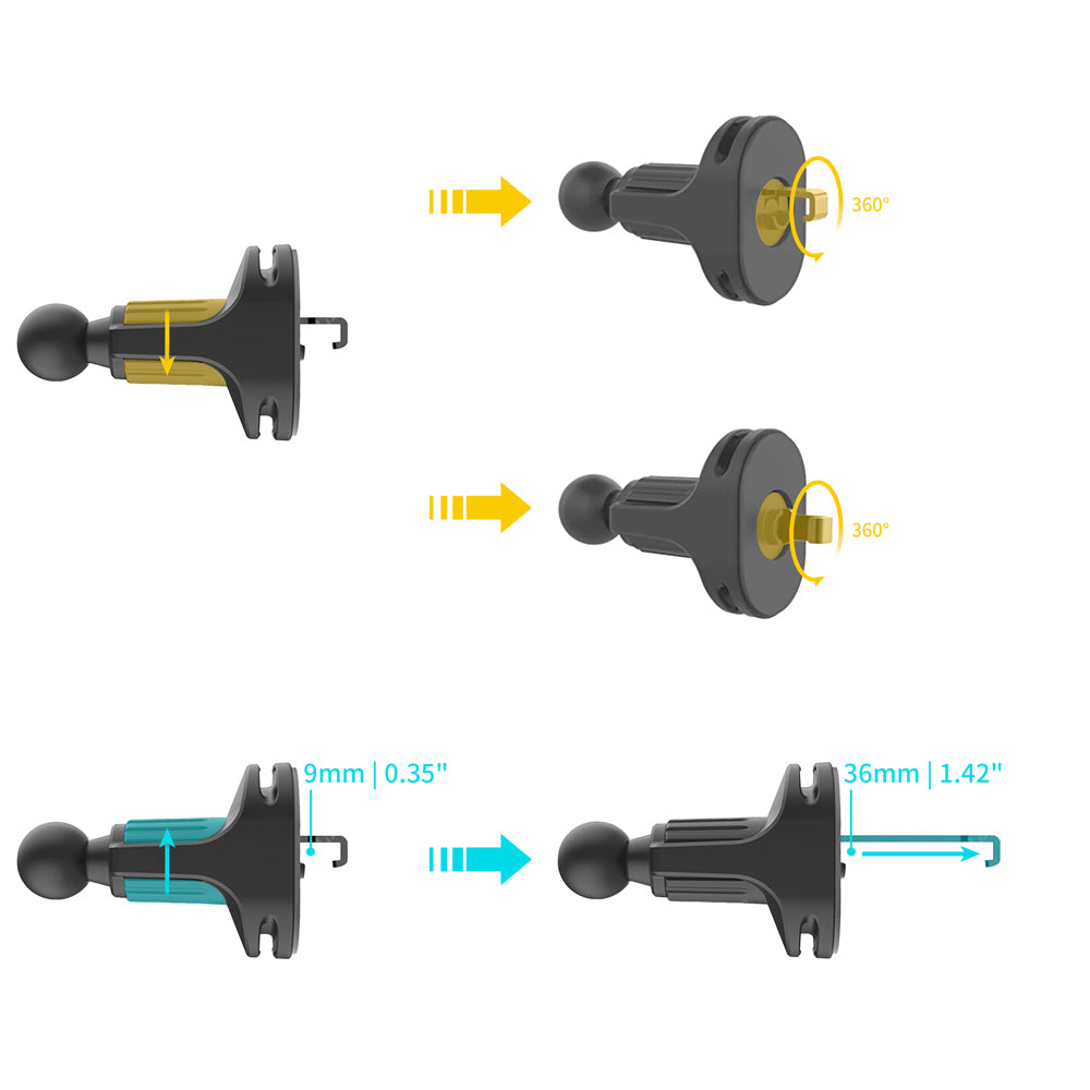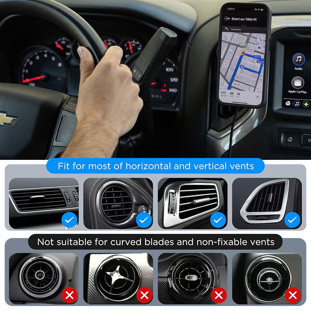 ARMOR-X Car Air Vent Mount. Mounting on the blades of the air outlet of the vehicle air conditioner. Compatible with horizontal or vertical vents.
