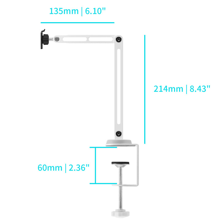 ARMOR-X Aluminium Adjustable Arm Clamp Mount. Clamp fits desks, kitchen worktops, sideboards, or headboards within 60mm (2.36").