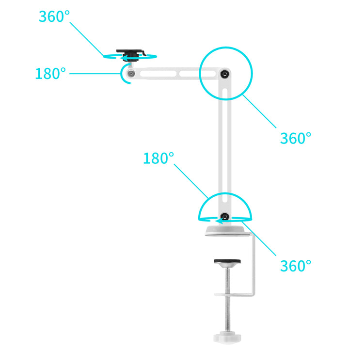 • The clamp mount has 5 rotatable joints (2x180°, 3x360°), you just need to loosen the screws with Allen key, adjust the position and angle and height, and then tighten the screws.