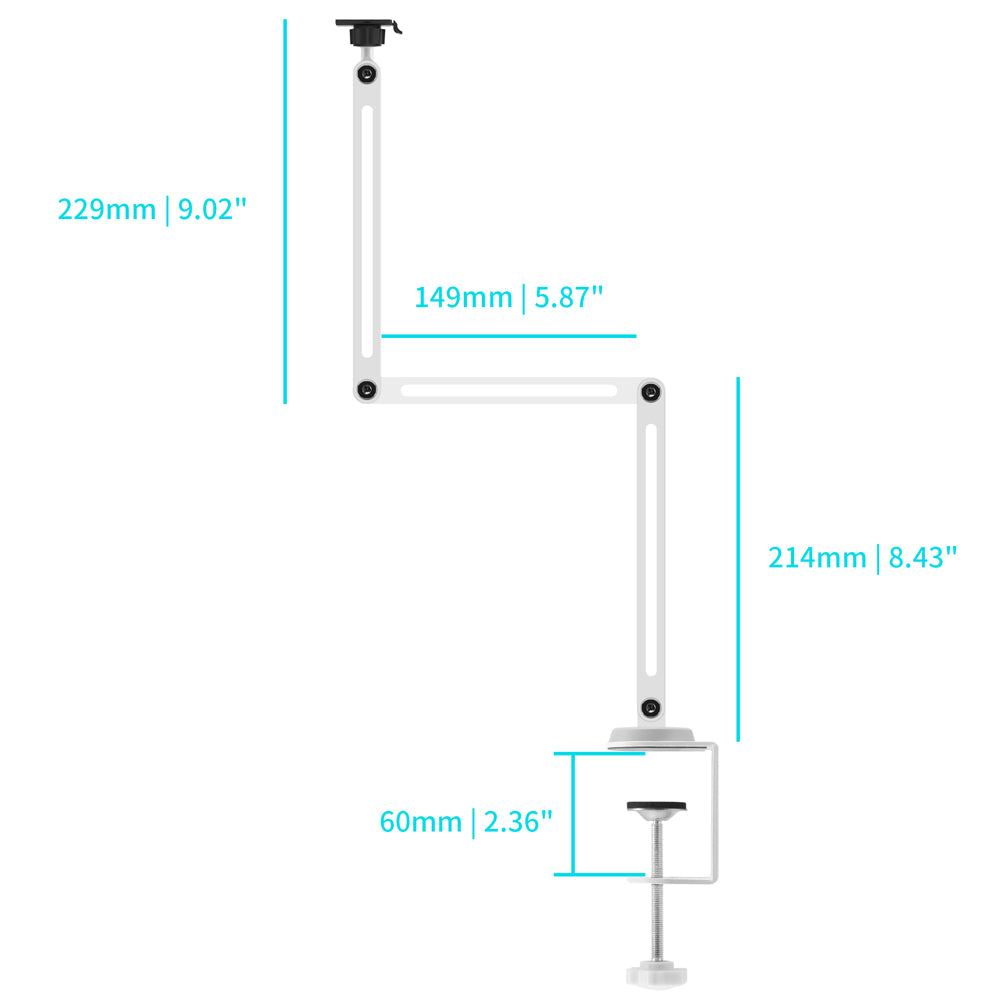 • Clamp fits desks, kitchen worktops, sideboards, or headboards within 60mm (2.36").