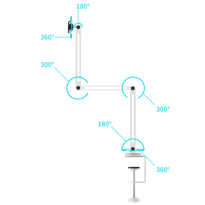 • The clamp mount has 6 rotatable joints (2x180°, 2x300°, 2x360°), you just need to loosen the screws with Allen key, adjust the position and angle and height, and then tighten the screws.