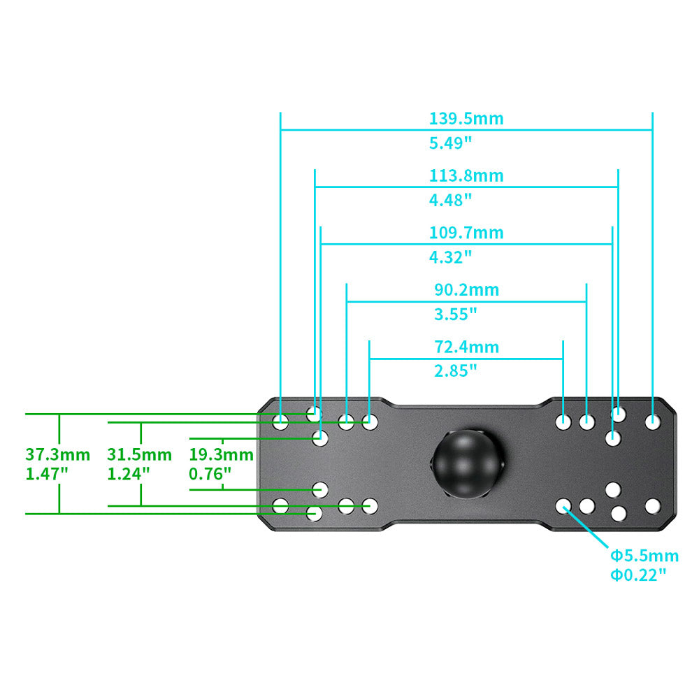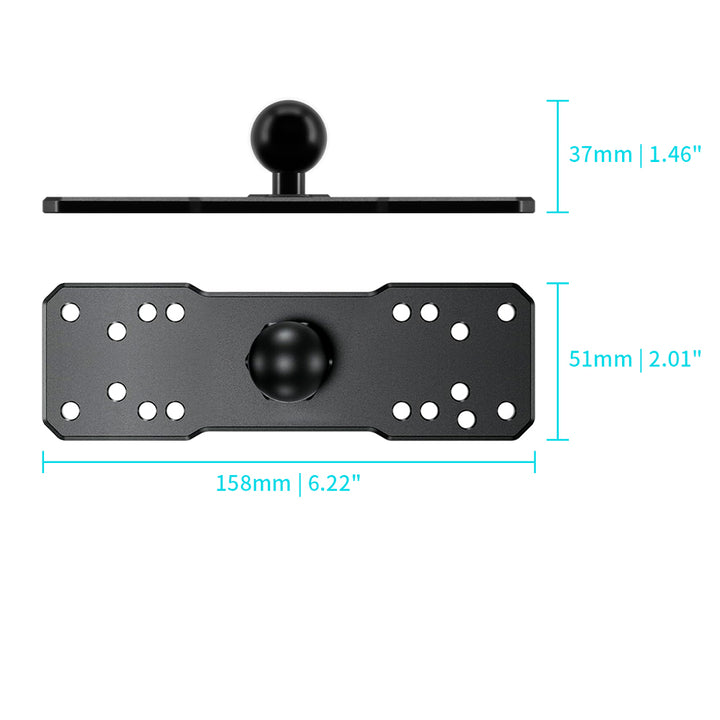 • The rectangle mounting plate contains a selection of mounting hole locations which will match up to many electronic devices and mounts, including Fish Finders, Marine GPS Chartplotters, CB Radios, Ham Radios, Gimbal Brackets, etc