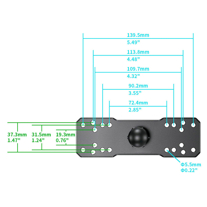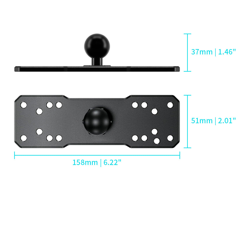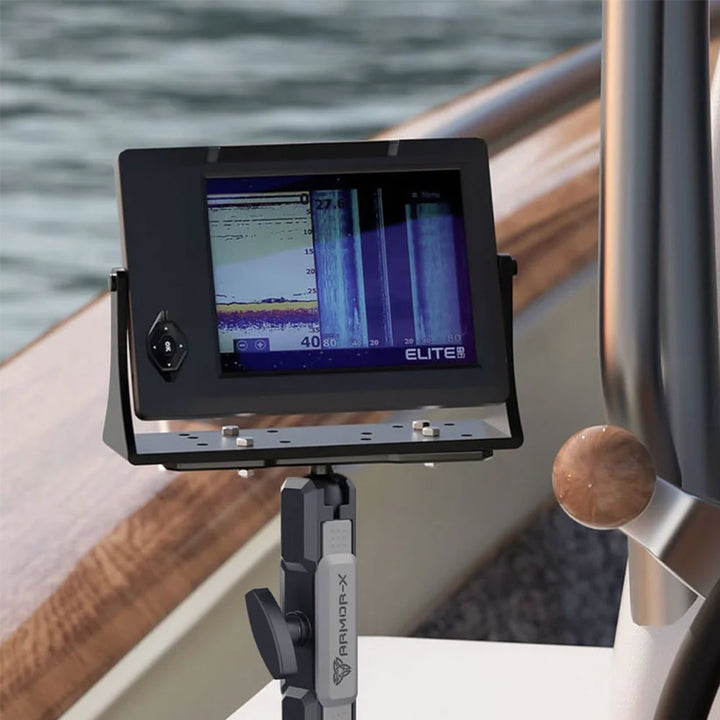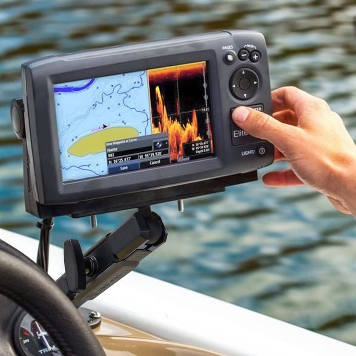 • The rectangle base contains a selection of mounting hole locations which will match up to many electronic devices and mounts, including Fish Finders, Marine GPS Chartplotters, CB Radios, Ham Radios, Gimbal Brackets, etc