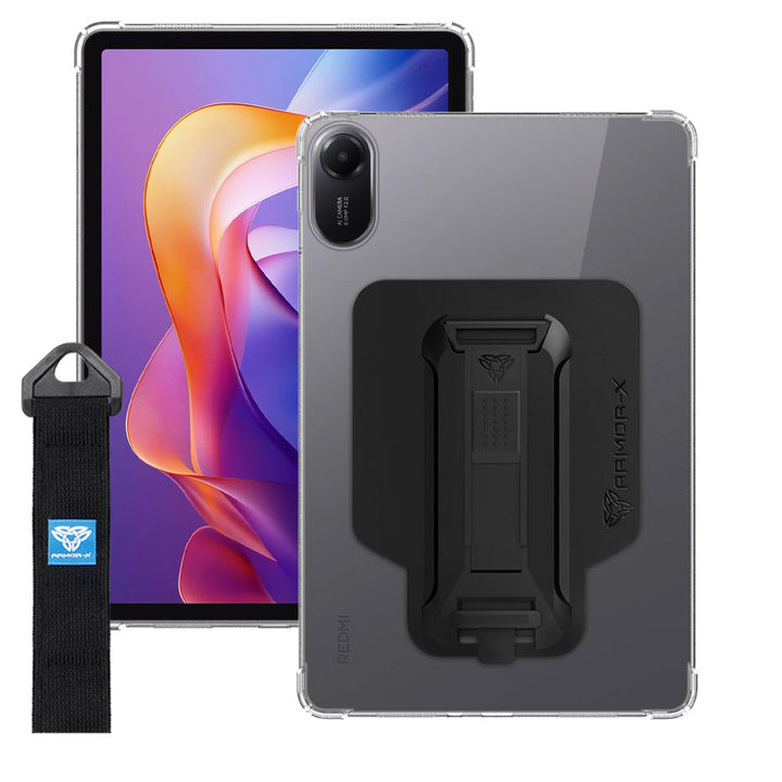 ARMOR-X Xiaomi Redmi Pad 2 shockproof case, impact protection cover with hand strap and kick stand. One-handed design for your workplace.